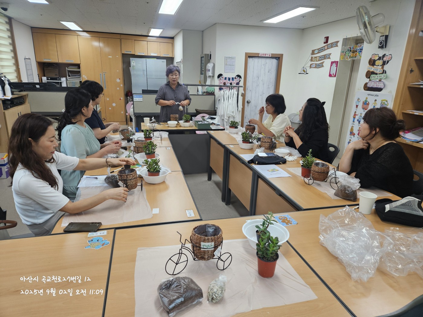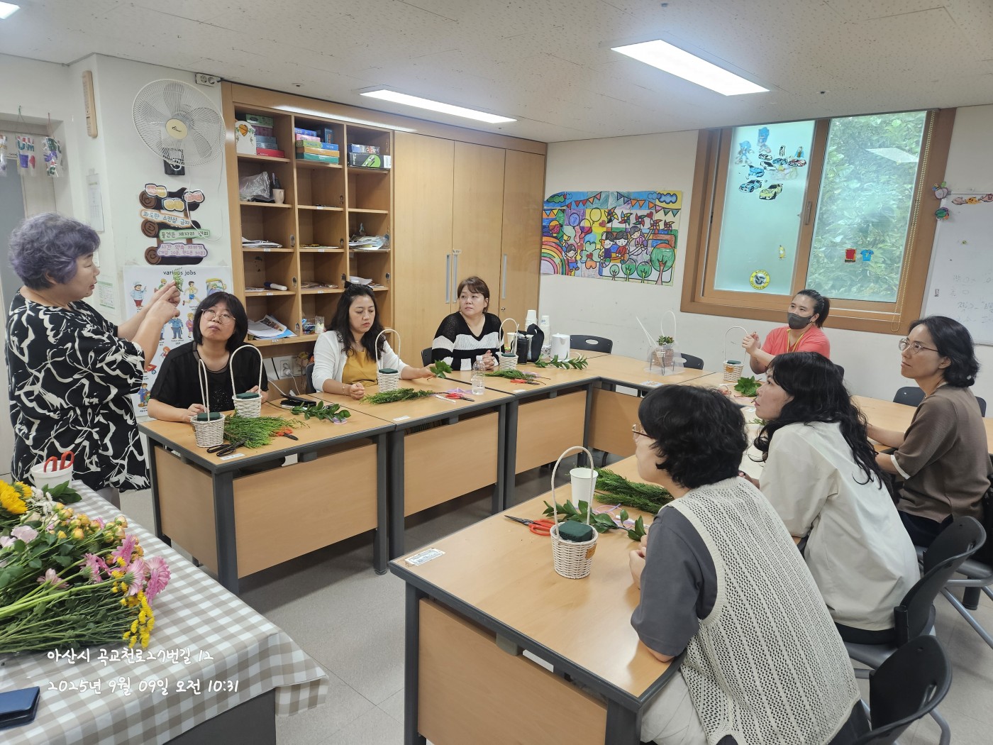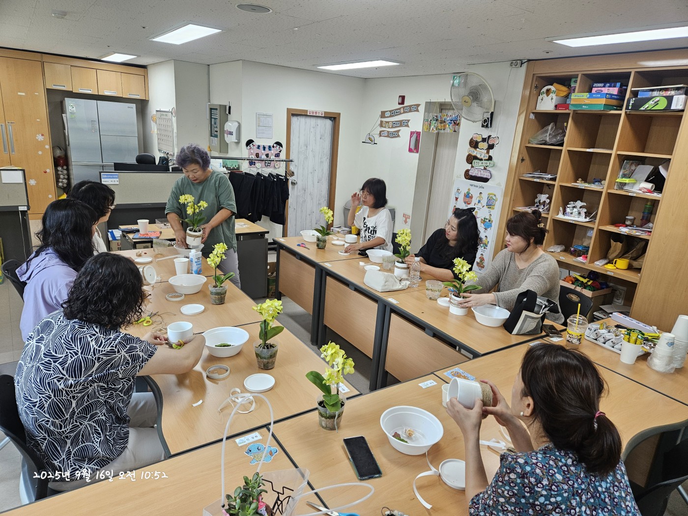 꽃으로 힐링하는 주 양육자 프로그램 9월 이야기 이진영 즐거운문화팀 0 137 09.29 16:50 아산시장애인복지관에서 하반기 꽃으로 힐링하는 주 양육자 프로그램을 진행하였습니다.누군가의 보호자, 엄마, 아내가 아닌 나만을 위한 시간으로 9월 총 5회기 원예교실을 진행하였습니다.그림책과 다양한 색카드를 통하여 나의 감정과 현 상황에 따른 다양한 감정에 대하여 서로 이야기 나누면서 꽃과 나무를 이용하여 소품을 만들어보는 등 마음이 힐링 되는 시간으로 진행되었습니다.