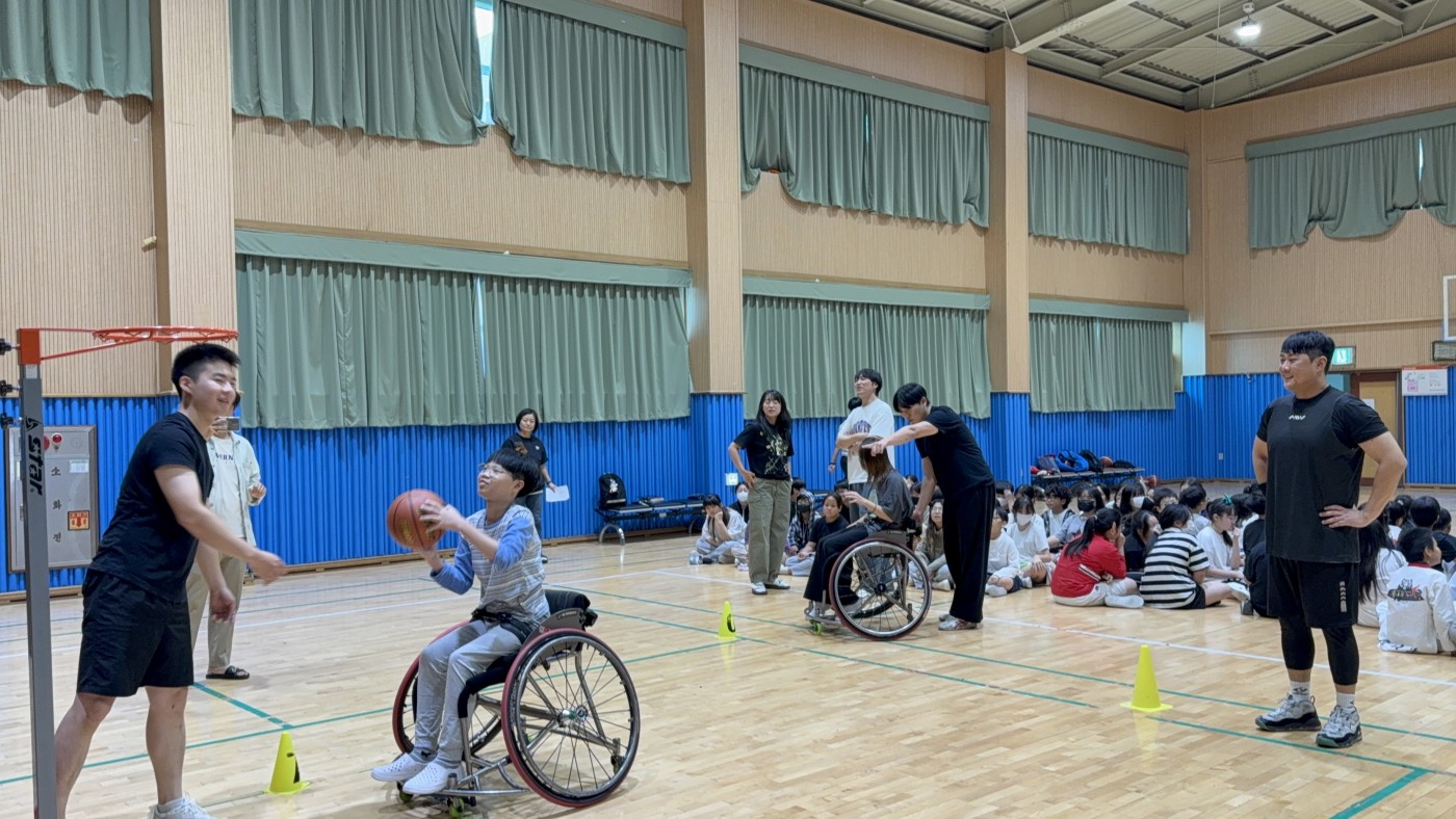 장애인식개선교육 (with 동덕초등학교) 진혜림 참여인권팀 0 124 10.02 10:19 9월 24일(수) 우리복지관의 사무국장님의 모교인 아산의 동덕 초등학교 4~6학년 100명을 대상으로 장애인식개선교육을 진행하였습니다. 국장님의 인사말씀을 시작으로 심휘호 강사님의 인식개선교육을 듣고 퀴즈풀며 서로 다름에 대해 이해해보고 장애인을 대하는 에티켓을 배우는 시간을 가졌습니다! 마지막으로 휠체어농구 시범경기를 보며 무장애스포츠에 대해 알아보고 열심히 응원하는 시간을 갖고, 휠체어농구를 직접 체험하며 즐거운 시간을 보냈답니다!