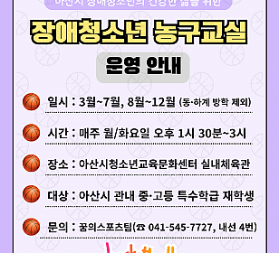 아산시 거주 장애 청소년(예비중학생, 중학생, 고등학생)
